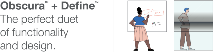 DUET pairs Define Glassboards, with the best pricing and selection in the industry, with our new Obscura Films, a beautifully designed collection of vinyl films that can be applied to any installed glass wall system or existing transparent surface.