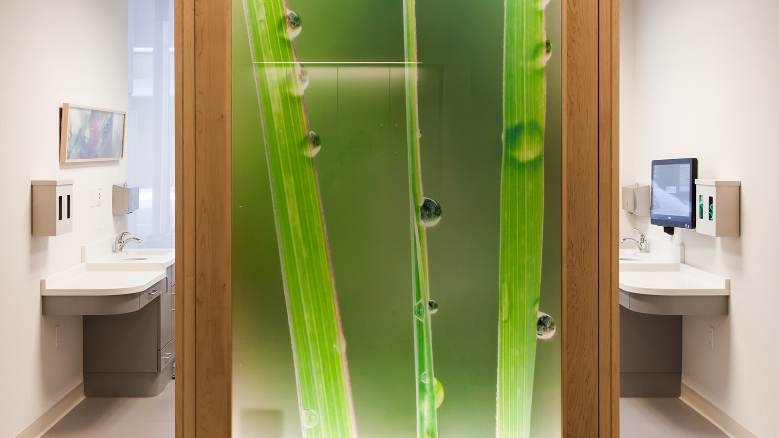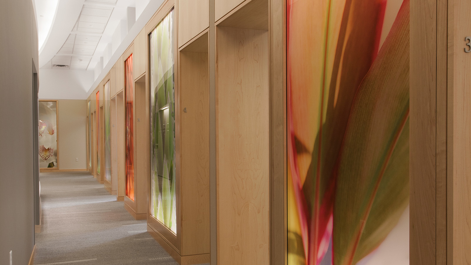 At Park LaSalle Dental, Skyline printed Henry Domkeās nature imagery on durable glass panels lining the reception area and hallways. The vivid, calming visuals bring natural warmth into the clinical setting while ensuring long-term cleanability and performance.